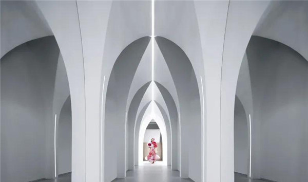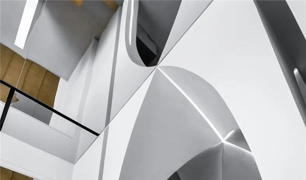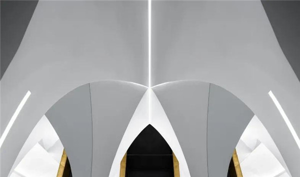 北京3AM·S艺术沙龙项目中,Design Plus Design递加设计设想了一个体现时间和空间碰撞的环境,以满足中国日益增长的美容行业需求。弱化过多的直线和平面,以圆形、镜像、双曲线、抛物线各种变化组合成充满韵律动感的异形空间。纯白的光线洒落在空间中心,天空被打开了一道通往另一个时空的洞口。