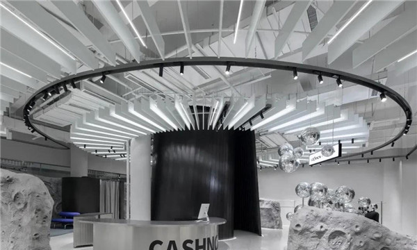 时尚买手店Looknow成都店呈现出外观,作为零售的“梦想之家”。LED屏幕、不锈钢、彩色背光面板和月亮一样的商品元素让购物者觉得他们正在穿越到另一个星球。
