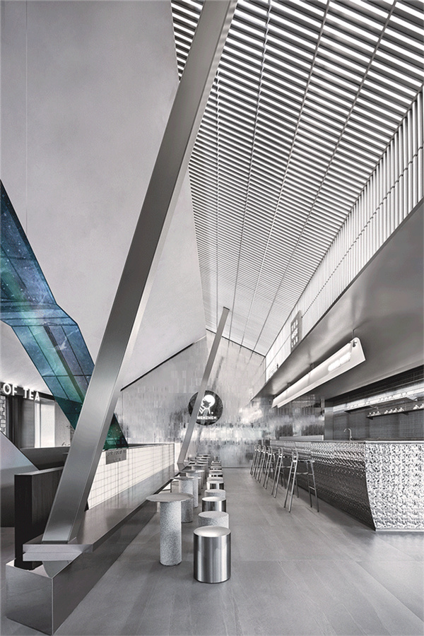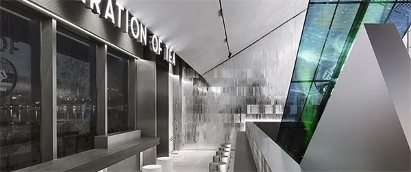 两侧墙面运用的银白色的金属质感材料