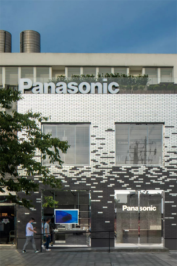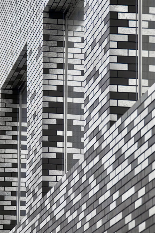 同时以转角渐变的方式穿插金属质感砖